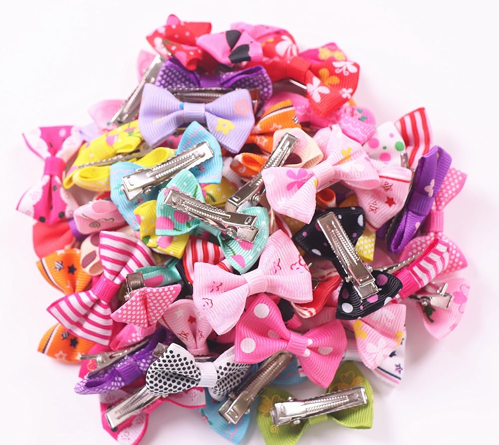 ياكا 60 قطعة (30 باريس) ربطات شعر لطيفة على شكل فيونكة صغيرة مع مشابك، اكسسوارات شعر يدوية الصنع منتجات العناية بالحيوانات الاليفة (60 قطعة، انماط لطيفة) (مشابك نمط 3)