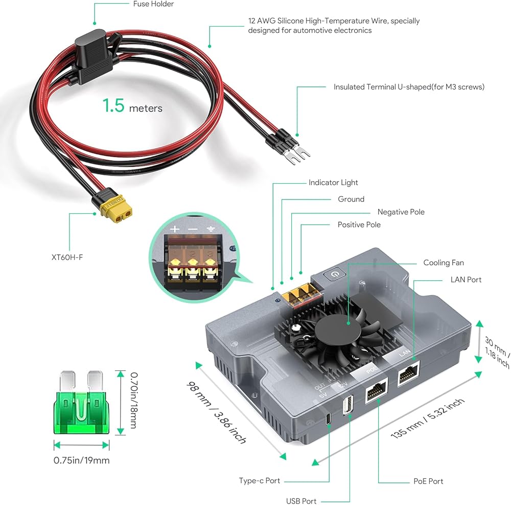Multiple Charging Options: Equipped with both USB-A and Type-C outputs, the USB-A provides 12V/3A, while the Type-C delivers 5V/3A, offering versatile charging solutions for various devices.