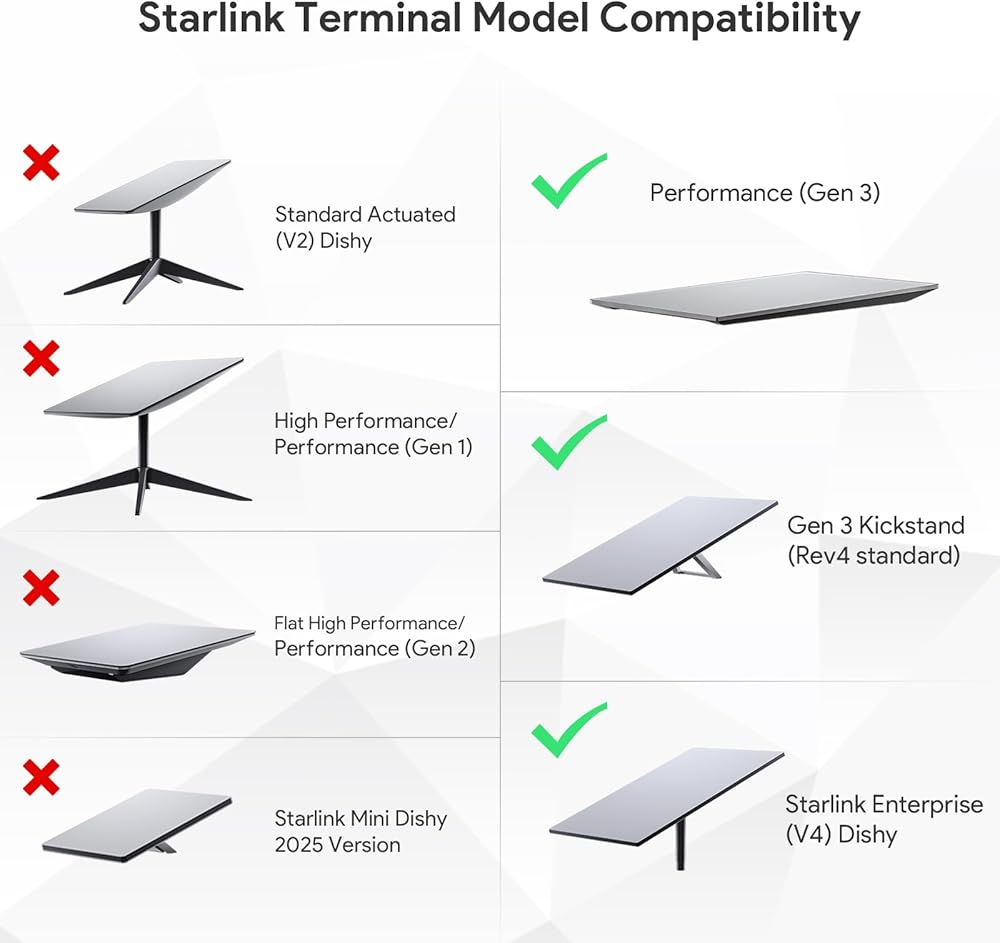 Tailored for Starlink Gen 2 Systems: Specially designed for seamless integration with Starlink Standard Actuated (Gen 2), ensuring consistent satellite internet connectivity and improved system performance.
