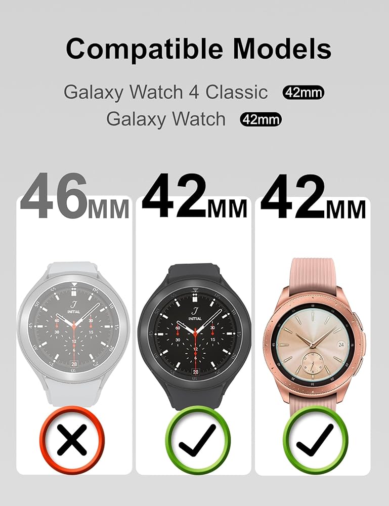 الساعة المتوافقة: مصممة بعناية لساعة جالاكسي 4 الكلاسيكية 42 ملم، يمكنها تغطية شاشة الساعة بشكل مثالي، مما يجعل الساعة تبدو وكأنها بدون زجاج مقسى