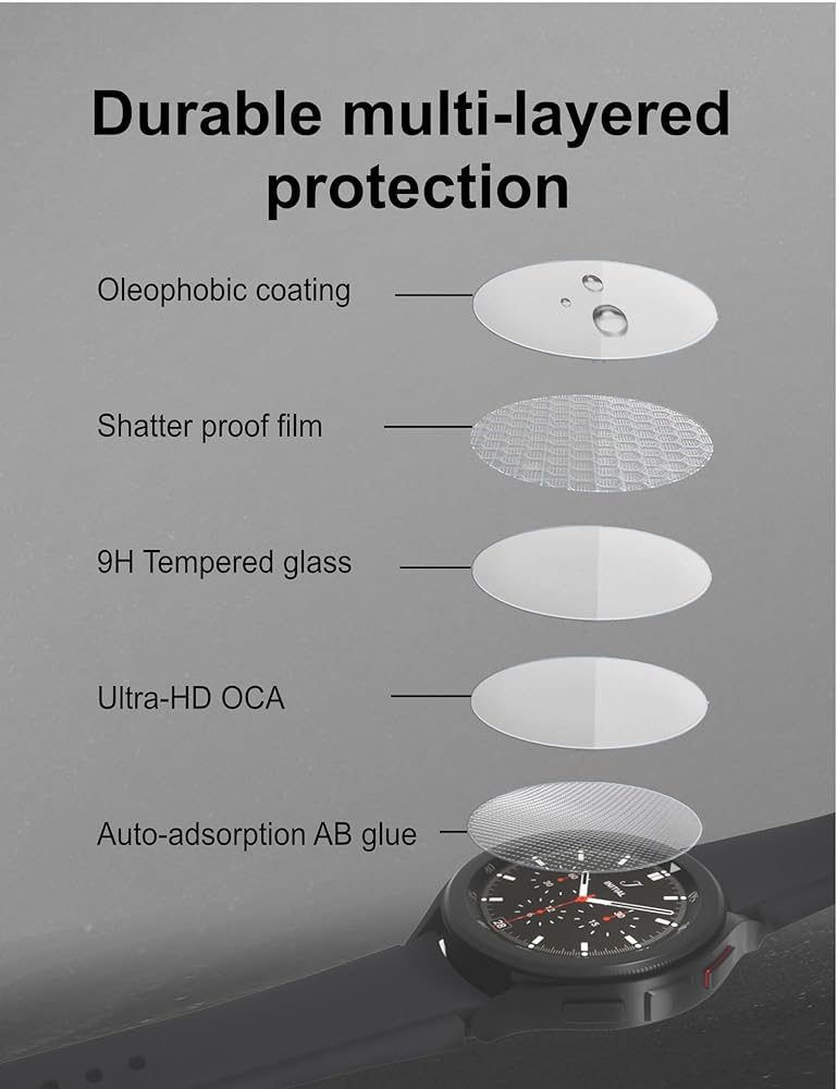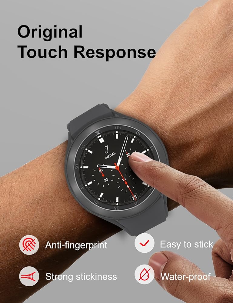 مضاد لبصمات الأصابع والوهج: سطح الواقي مطلي خصيصًا بطبقة كارهة للماء ومعالجة مضادة للوهج لتقليل التصاق بصمات الأصابع والانعكاس، وتمكين ساعتك من العرض بوضوح في أي موقف