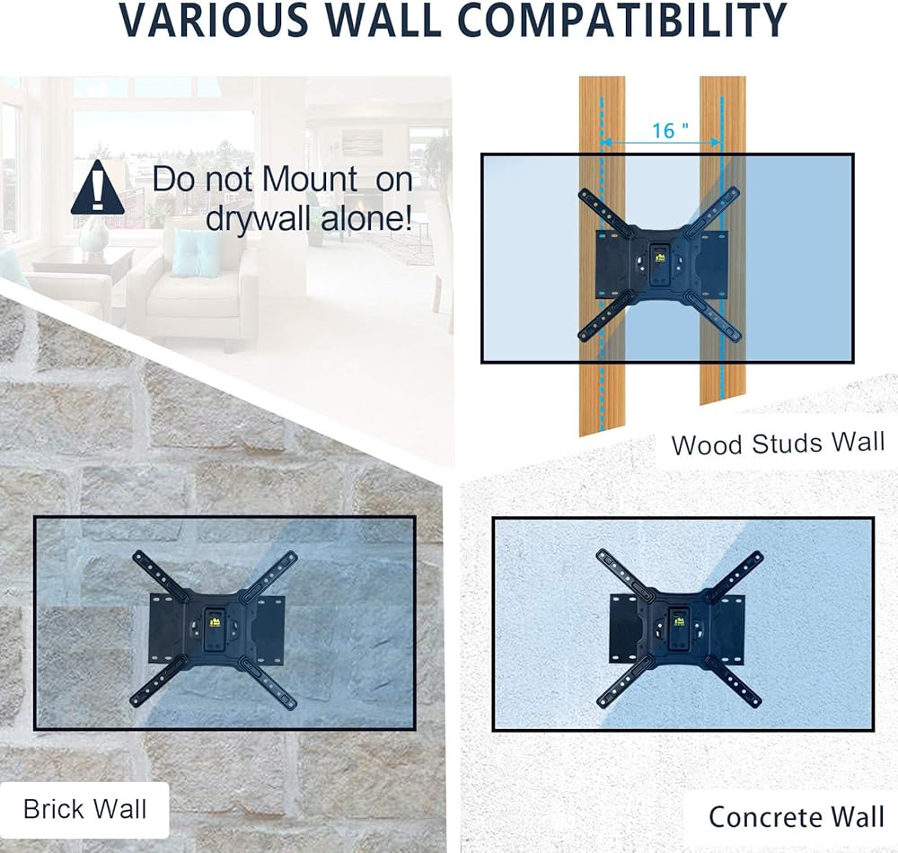 موثوق به: تم تصميم ذراع شاشة التثبيت الطويلة للتلفزيون هذا من هيكل فولاذي كربوني عالي التحمل، ولوحة حائط غير مقسمة وتصميم ذراع لدعم أجهزة التلفاز التي يصل وزنها إلى 110 رطل، وقد اجتاز اختبار التحميل بوزن 330 رطلاً.