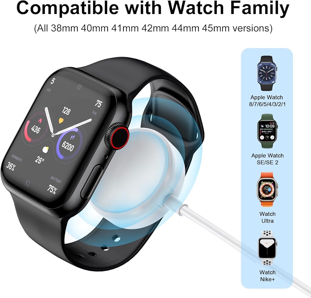 The USB C watch charger cable is compatible with any USB-C charging port, such as sockets, car chargers, power banks and computers.