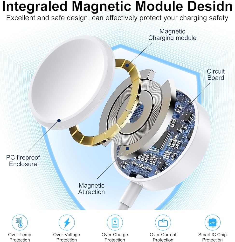 Smart watch charging cord with built-in upgraded chip, with multiple charging safety protections to provide a faster and stable charging.