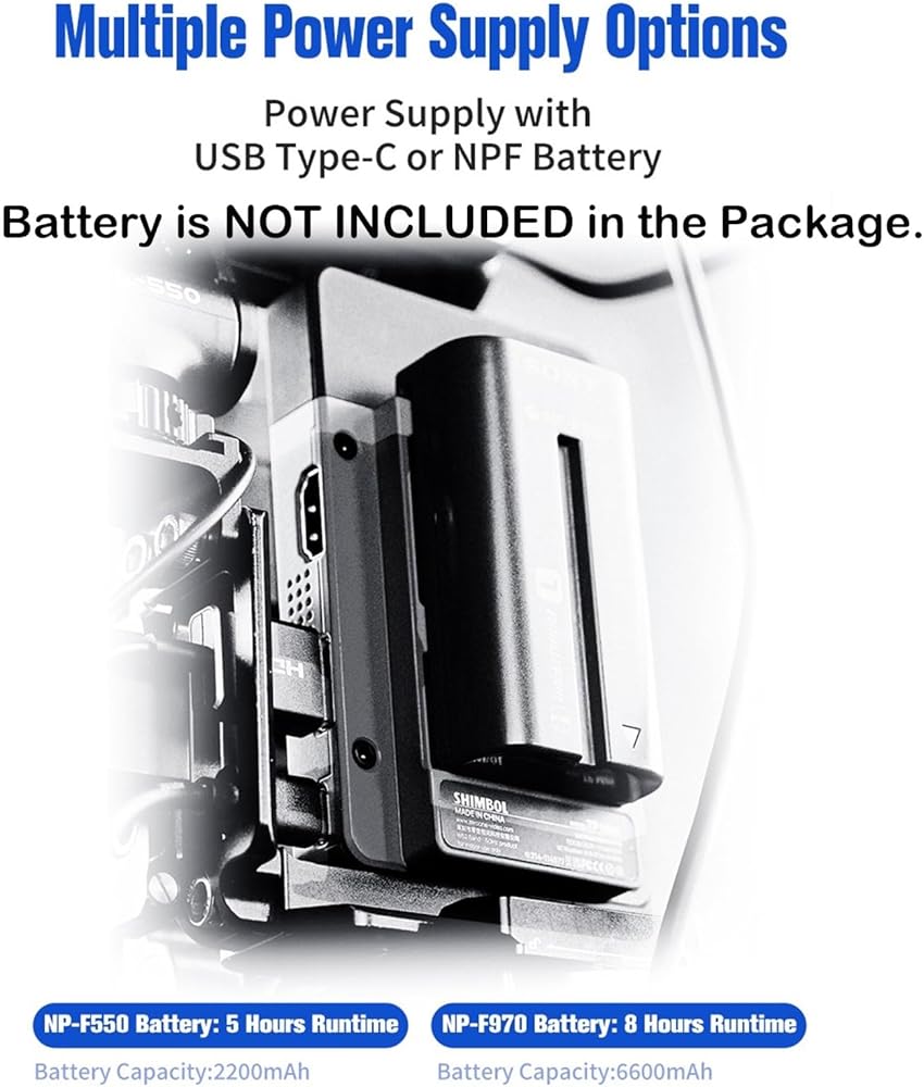 خيارات متعددة لإمدادات الطاقة. بالإضافة إلى أنه مدعوم ببطاريات NPF، فهو يدعم أيضًا الطاقة من بنك الطاقة عبر منفذ Type-C.
