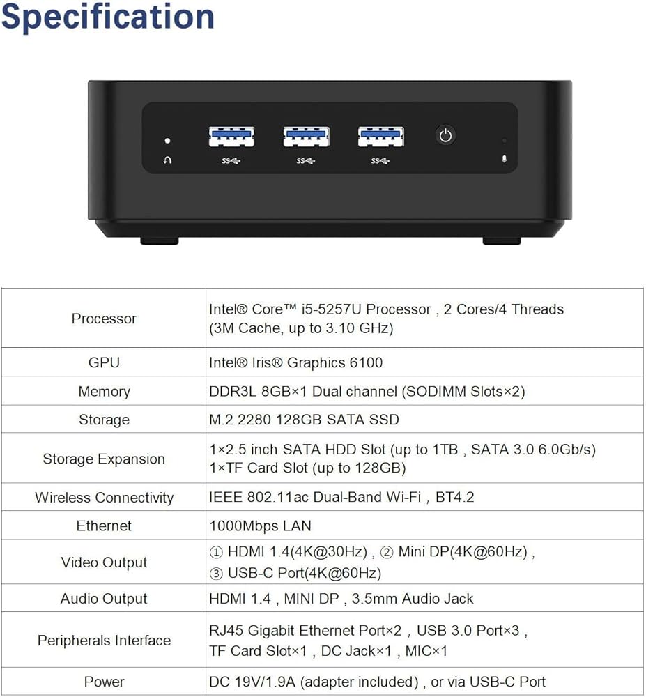 • 【أداء أعلى】: يأتي الكمبيوتر الصغير U700 مع معالج Core i5-5257U، فهو يوفر أداء أفضل بنسبة تصل إلى 30% من الجيل السابق.