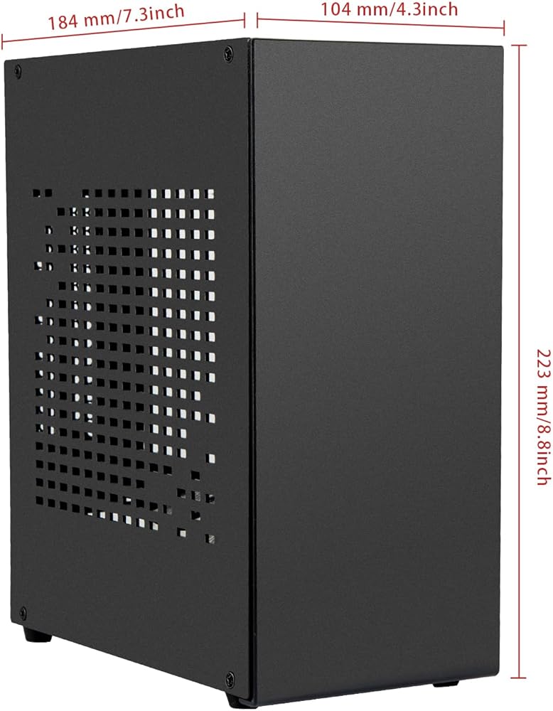 【Ultra Mini ITX Case with PCIe 4.0 Riser Cable】The Case is only 4.3L capacity, the size is 18.4x10.4x22.3 cm (7.3x4.1x8.8 inch), PCI 4.0 Riser Cable is 18.5cm
