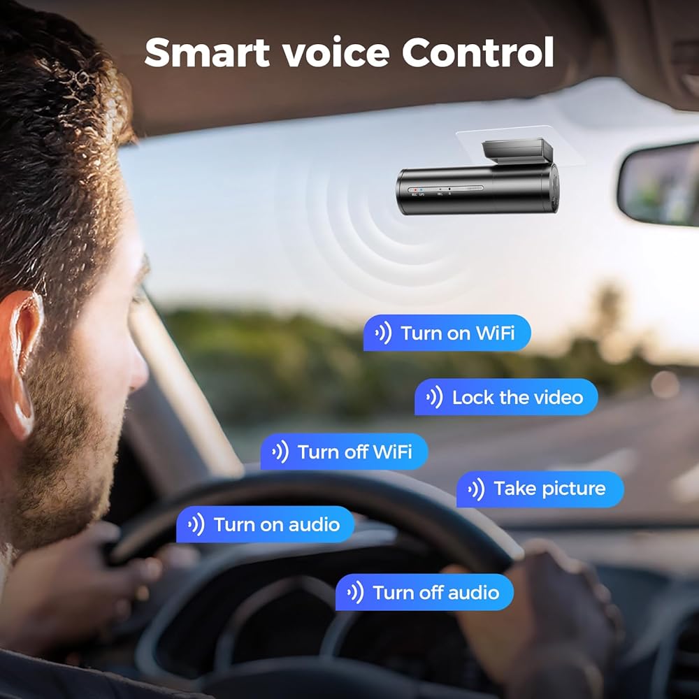 AZDOME M300S 4K Ultra HD Dual Dash Cam أمامية وخلفية، بطاقة مجانية 64 جيجابايت، كاميرا سيارة مدمجة للتحكم الصوتي بنظام WiFi GPS، رؤية ليلية، ADAS، شاشة وقوف السيارات على مدار 24 ساعة، تسجيل حلقة (أسود غير لامع)