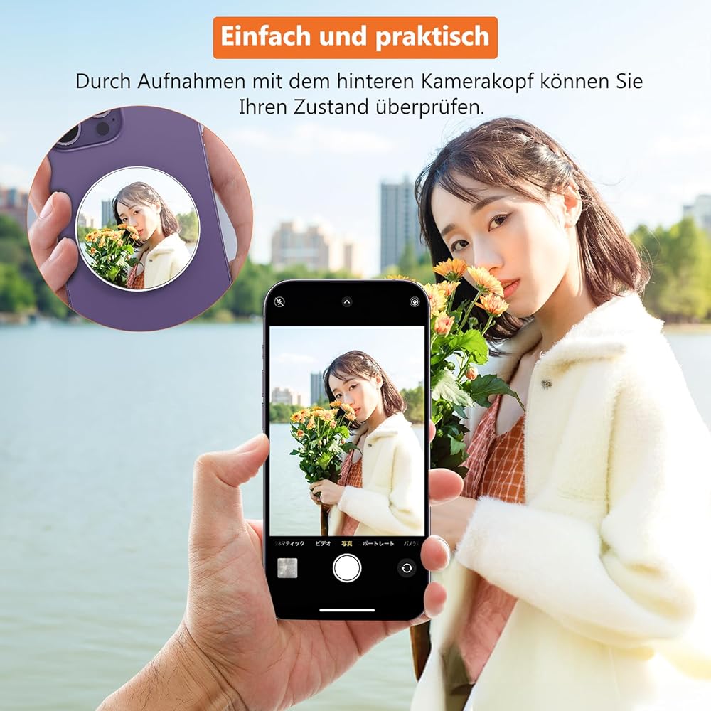 【مرآة سيلفي مقاس 2.2 بوصة】يمكن لمرآة السيلفي هذه أن تساعدك على التقاط مقاطع فيديو وصور سيلفي عالية الجودة من خلال الكاميرا الخلفية لهاتفك. مع مرآة مقاس 2.2 بوصة، يمكنك التقاط صور أكثر وضوحًا دون القلق بشأن عدم القدرة على رؤية نفسك في الكاميرا الخلفية بعد الآن.