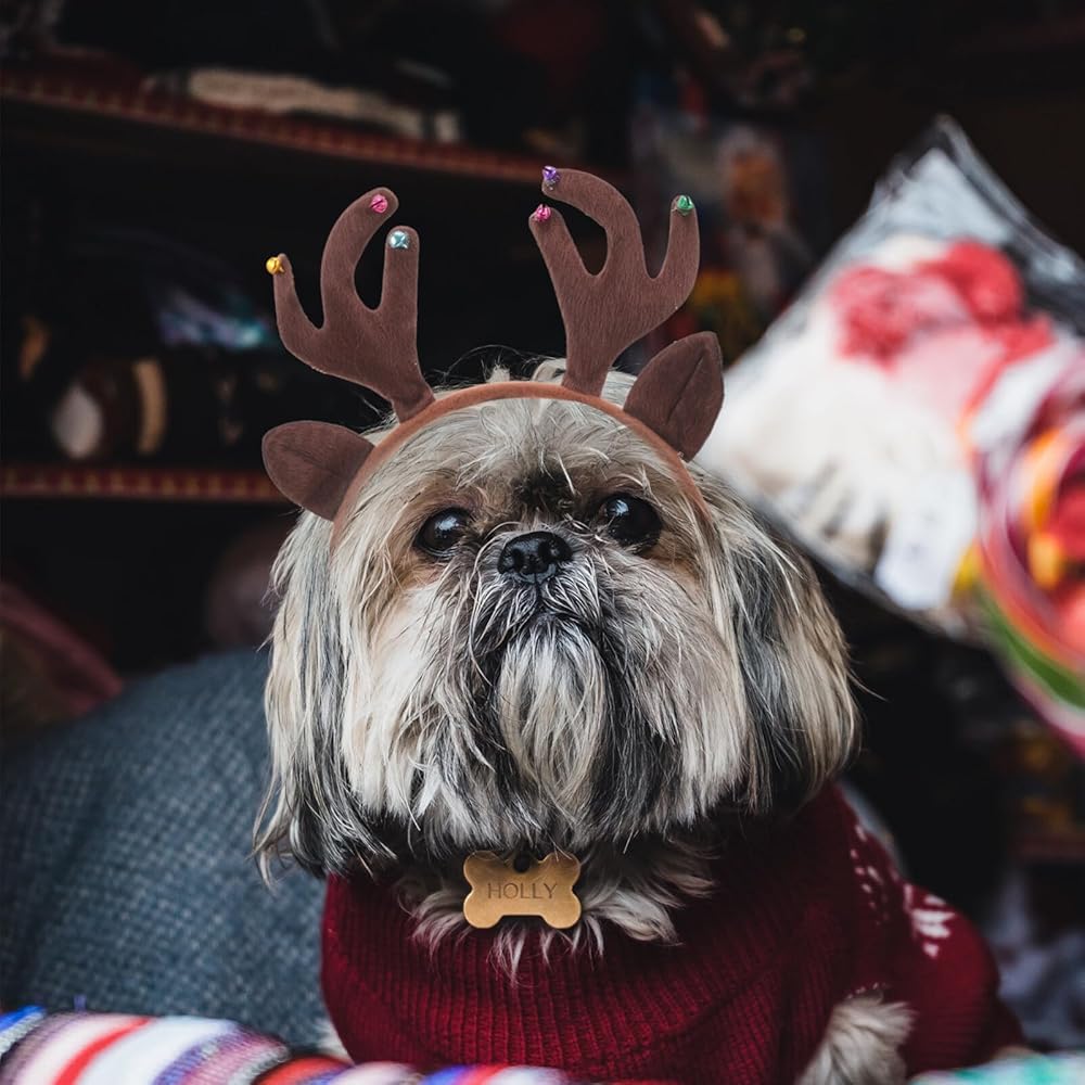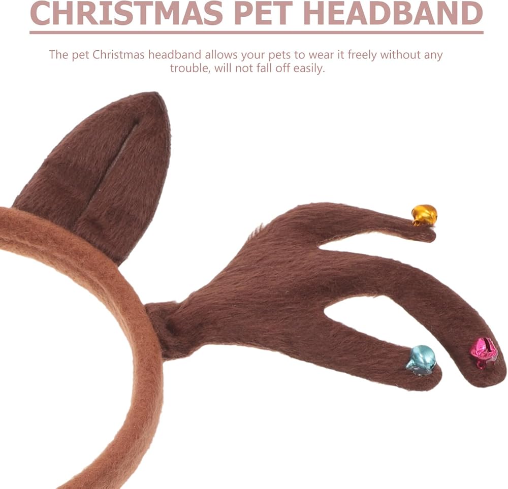 Dog Elk Reindeer Antler Headband,Pet Elk Headwear with Bell Christmas Costume Headwear Accessories for Dogs and Cats Medium.