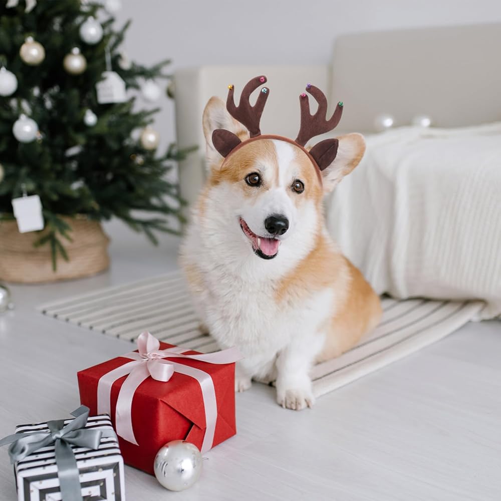 🌲🎅🦌⛄Festive pet accessory: dress up your pet with this adorable antler headband for christmas party. The pet Christmas headband allows your pets to wear it freely without any trouble, will not fall off easily.