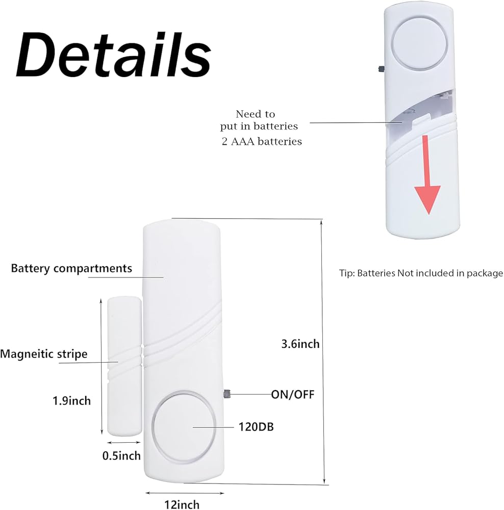 إنذار كبير بصوت عالٍ - أجهزة استشعار نافذة الباب عالية بما يكفي لاكتشاف الدخول، ومنع الأطفال والرضع من الخروج من المنزل، وحماية مكتبك المنزلي، أو المرآب، أو غرفة النوم، أو الشقة سواء كنت داخل المنزل أو خارجه. يمكنك بالتأكيد سماعها من غرفة أخرى لتنبيهك. لا تقلق من أن الأطفال الصغار قد يعبثون بها، فقط ارفعها عاليًا حيث لا يمكنهم الوصول إليها. تعمل على الأبواب المنزلقة، والنوافذ، والأدراج، والثلاجة