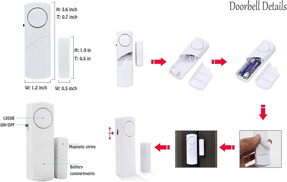تصميم ذكي - يتم فصل المنبه والشريط المغناطيسي بأكثر من 0.39 بوصة (10 مم)، ويستمر في الانطلاق حتى تغلق الباب (تجعلهما متصلين) أو تطفئه (قم بالتبديل إلى الزر "إيقاف").