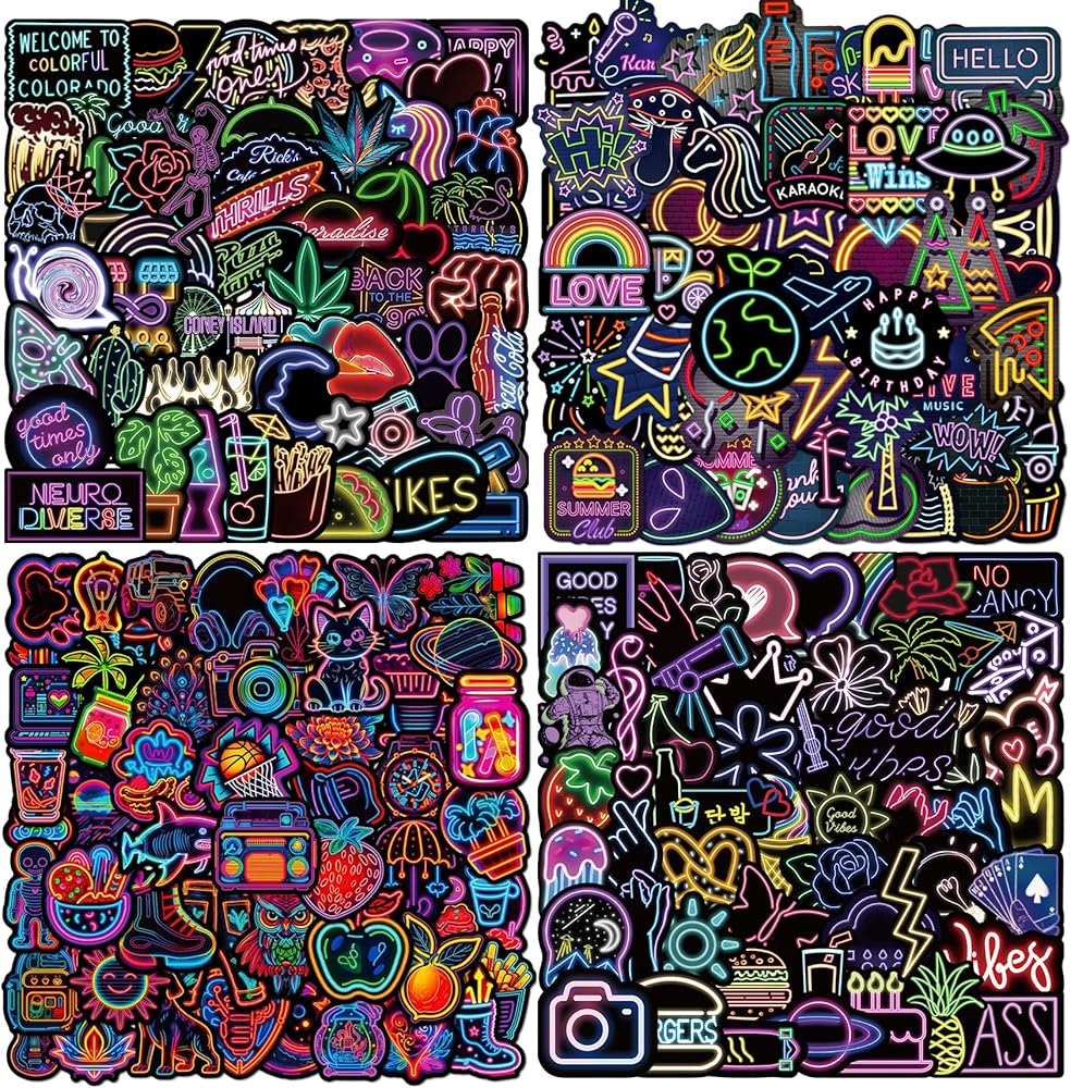 【200 ملصق نيون】 تحتوي حزمة الملصقات على 200 قطعة من ملصقات النيون المختلفة بمقاس يتراوح من 2.0 إلى 3.0 بوصة. أنماط فريدة مناسبة للأطفال والمراهقين والفتيات والنساء.