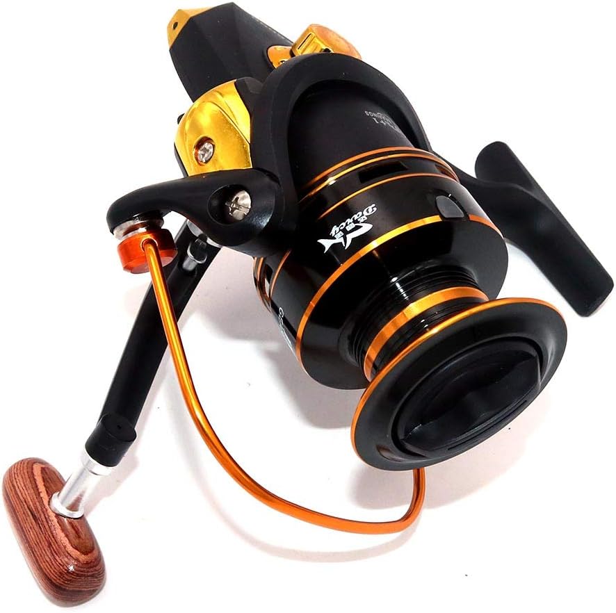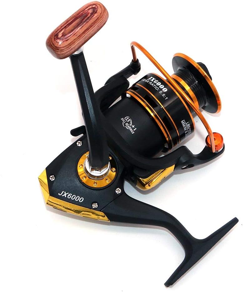 Features: <br> Super smooth & balancing 12+1 Ball bearings design<br> Heavy duty & Durable metal reel foot & spool<br> Stylish wooden reel handle, Light and Comfortable<br> Left and right convertible spinning design with folding rocking bar<br> Model Size: AX6000, Gear Ratio 5.2:1<br> Description: <br> This spinning wheel come with 12+1 Ball bearings design, super smooth and balancing. High quality metal built spool and reel foot, strong & durable. Foldable & removable reel handle bar, easier