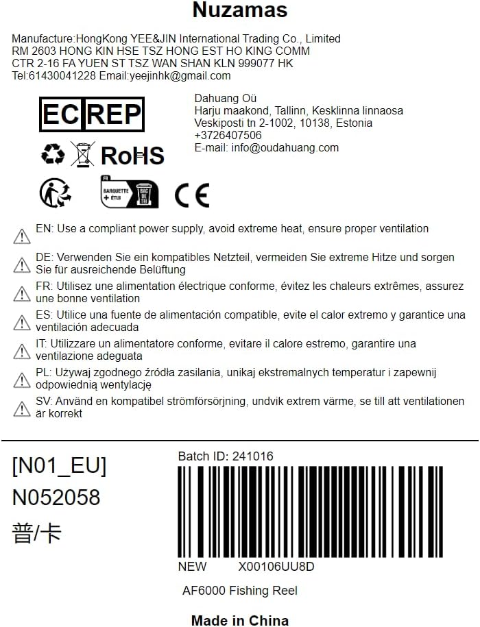 1 x NUZAMAS 6000 Spinning Fishing Reel