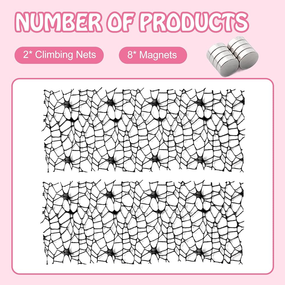 Product Dimensions: Each spider climbing mesh measures approximately 9.8 inches in length and 3.7 inches in width. The magnets used have a diameter of 10 mm and can be trimmed to fit your needs.