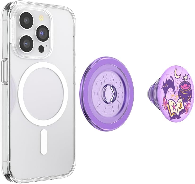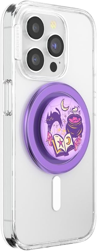 مقبض هاتف دائري من PopSockets متوافق مع MagSafe، يتضمن حلقة محول، حامل هاتف، متوافق مع الشحن اللاسلكي - Witches Brew Purple