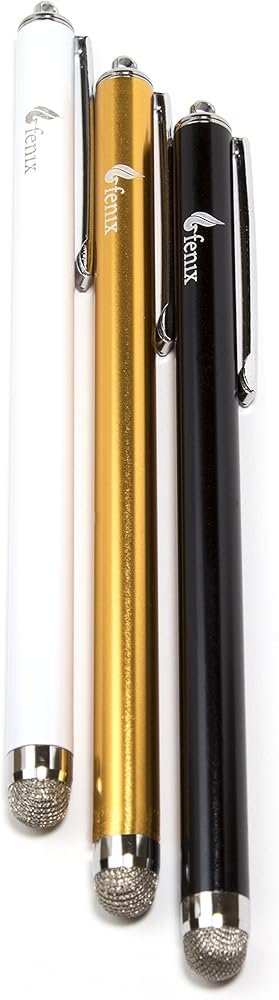Fenix ​​- مجموعة من 3 أقلام [ذهبي، أسود، أبيض] مع طرف من الألياف الهجينة الدقيقة لهواتف iPhone 4/5/5c/6/6+، iPad/iPad Air/iPad Mini، وSamsung Galaxy S4/S5/S6/Edge وKindle Fire وSurface Pro والمزيد