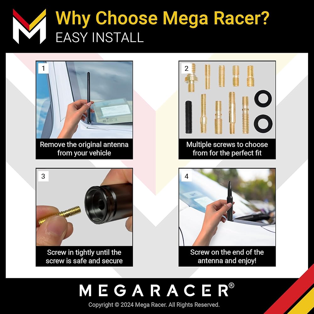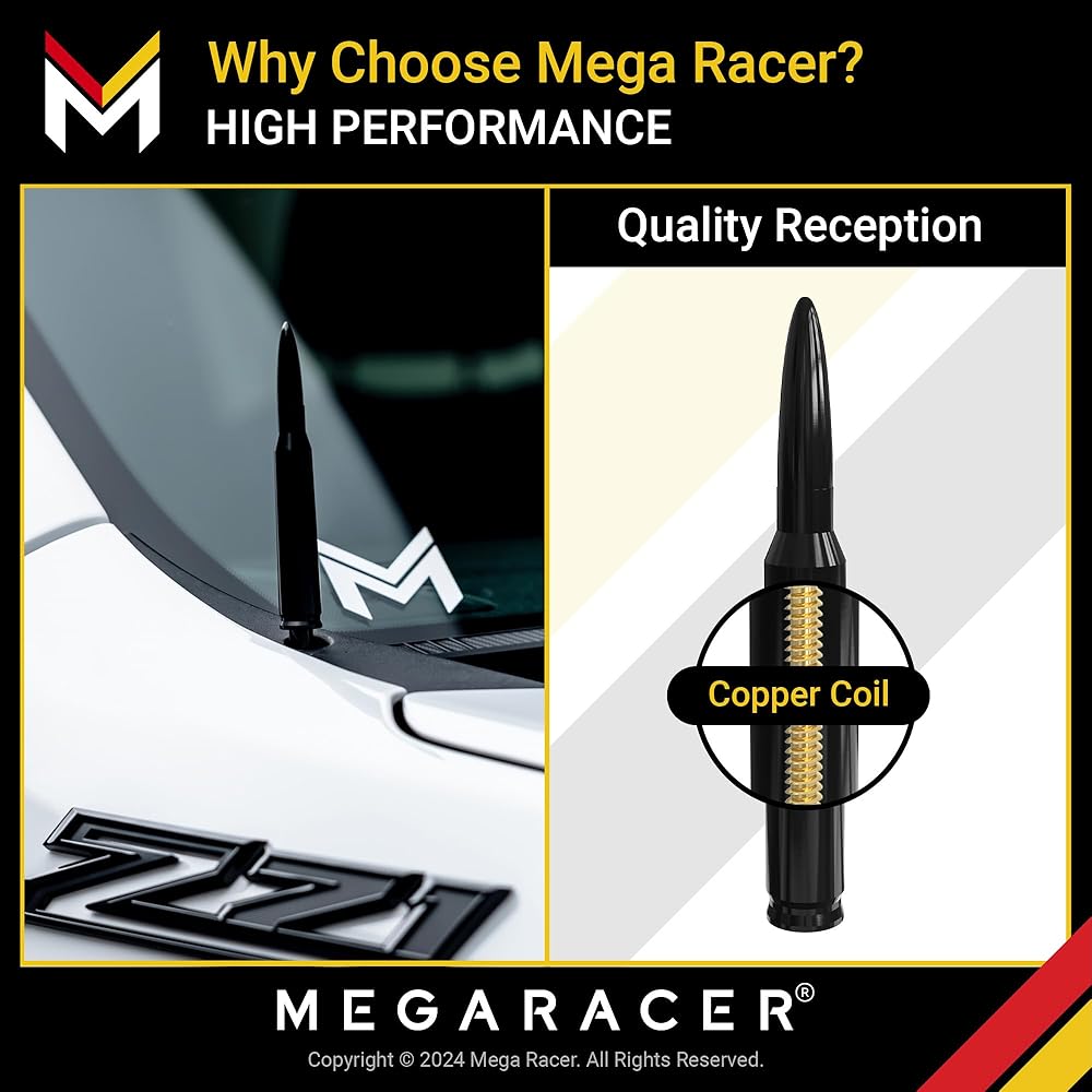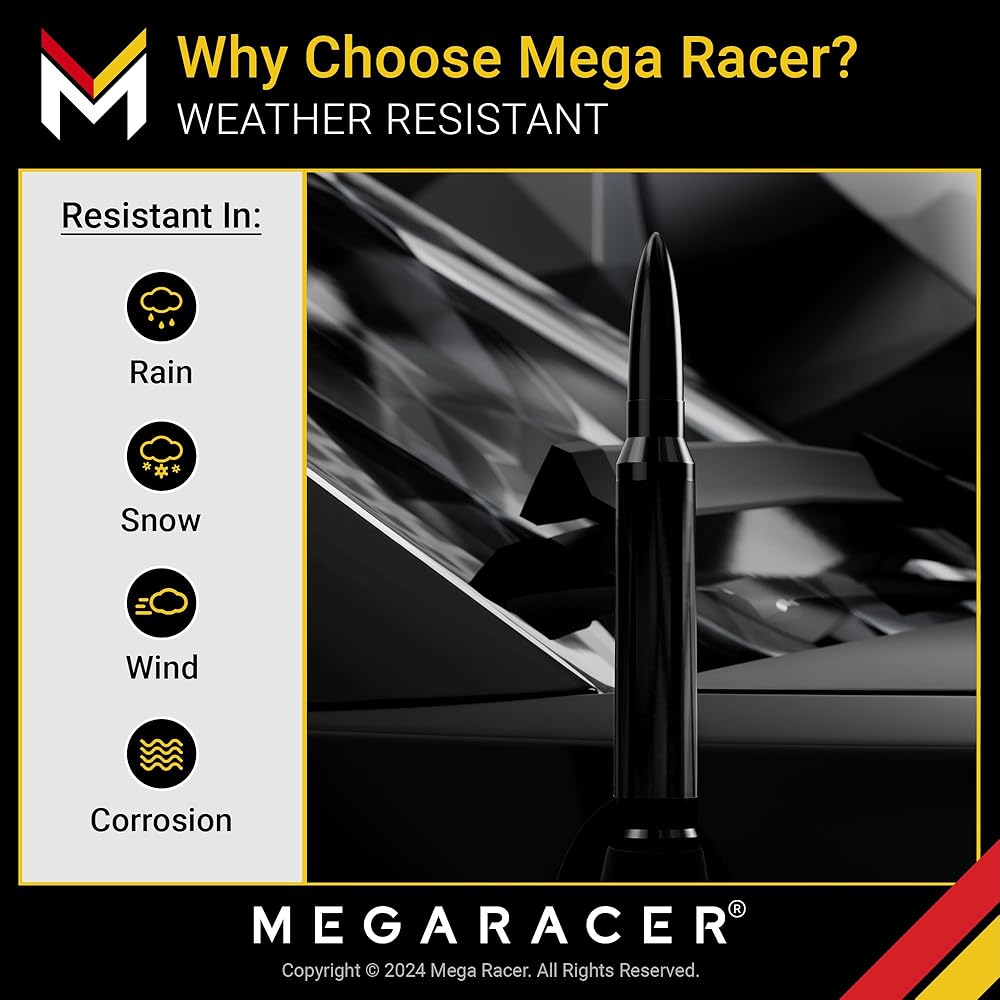 راديو AM/FM: تجنب سماع الضوضاء الساكنة غير المرغوب فيها عند تغيير المحطات. هوائي Mega Racer 50 Cal مصنوع من الألومنيوم الصلب 6061 وهو أكثر توصيلًا بنسبة 500% من الفولاذ لضمان موسيقى واضحة تمامًا بدون ضوضاء الراديو.