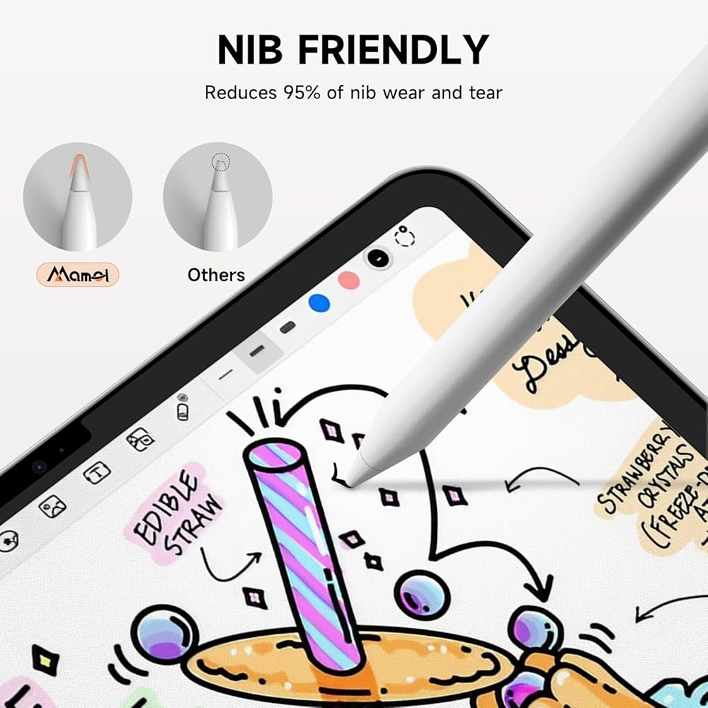 【تقنية النانو المتقدمة】تقنية امتصاص النانو من مامول هي جيل متقدم على تكنولوجيا الامتصاص المغناطيسي ولها قوة شفط أقوى. يتناسب الغشاء الواقي بإحكام مع شاشة iPad دون انزلاق، ويكون الامتصاص طويل الأمد وثابتًا، دون تزييف. لا يوجد إزاحة طبيعية، اكتب وارسم بقدر ما تريد. لا ينخفض استخدام الشفط على المدى الطويل، فالعصا الحقيقية مع استخدام غير مغناطيسي ناعمة ولا تضغط على اليد.