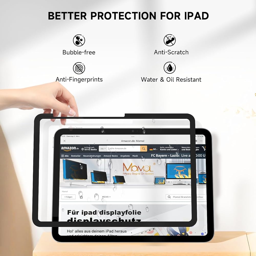 【خالية من الفقاعات】 يتميز الغشاء الواقي لجهاز iPad 12.9 بمواد أفضل وتكنولوجيا متقدمة، عند تثبيت واقي شاشة iPad المضاد للضوء الأزرق سيتناسب تلقائيًا بسلاسة مع شاشة iPad، ولا يوجد فقاعات هواء أو فوضى لاصقة عند التحرك. يرجى التأكد من تنظيف شاشة iPad باستخدام الملحقات المرفقة لدينا قبل التثبيت لتجنب فقاعات الهواء.