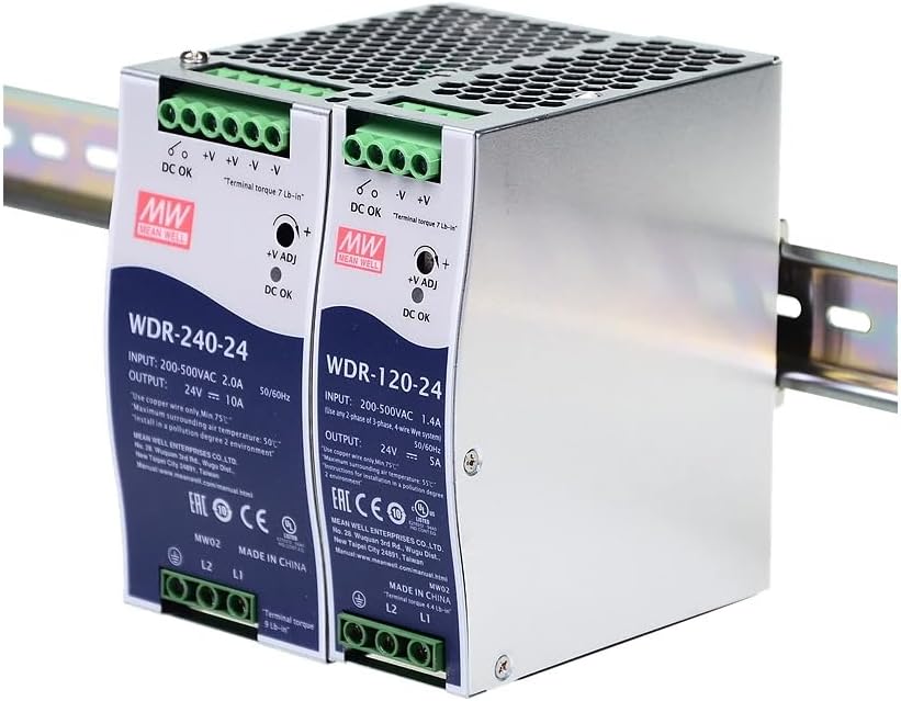 Features : Single and two phase wide input range 180 ~ 550VAC Protections: short circuit/overload/over voltage/over temperature Cooling by free air convection Built-in constant current limiting circuit Can be installed on DIN rail TS-35/7.5 or 15 UL508(industrial control equipment)approved EN61000-6-2(EN50082-2) industrial immunity level 100% full load burn-in test Built-in DC OK relay contact