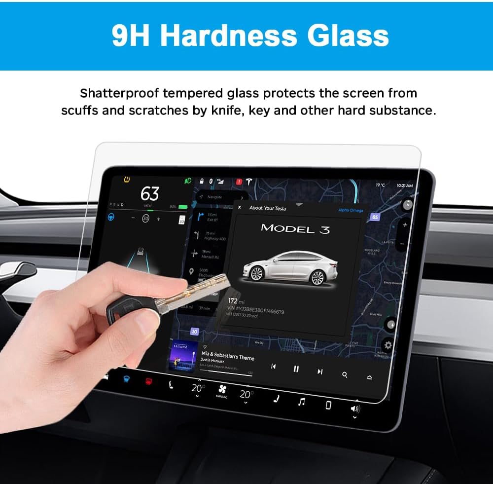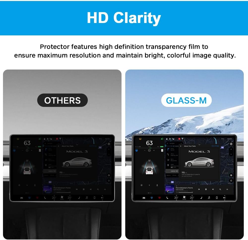 GLASS-M Tesla Model Y Model 3 واقي شاشة من الزجاج المقسى، شاشة لمس مركزية مقاس 15 بوصة تعمل باللمس، واقي شاشة لمس للسيارة [مجموعة سهلة التركيب] [مضاد للخدش بدرجة 9H] [مضاد لبصمات الأصابع]