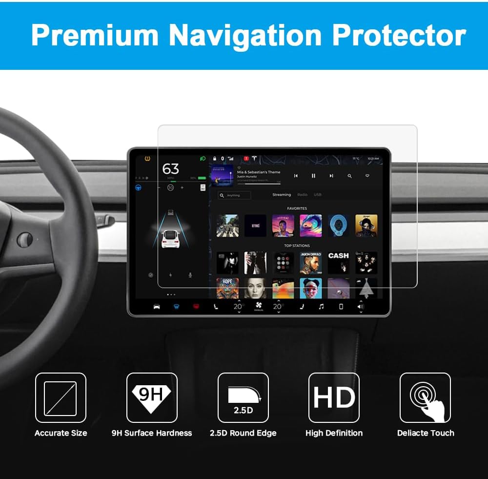 - متوافق مع شاشة Tesla Model 3 وModel Y. لن يؤثر ذلك على اللون وحجم الرمز وإمكانيات شاشة اللمس لشاشة GPS الخاصة بك.