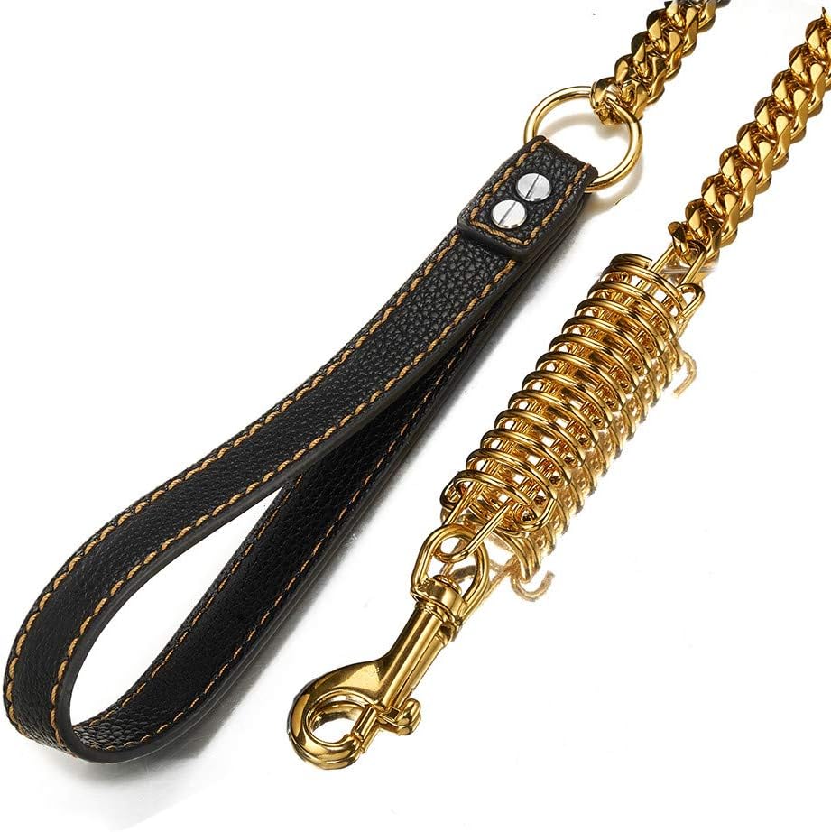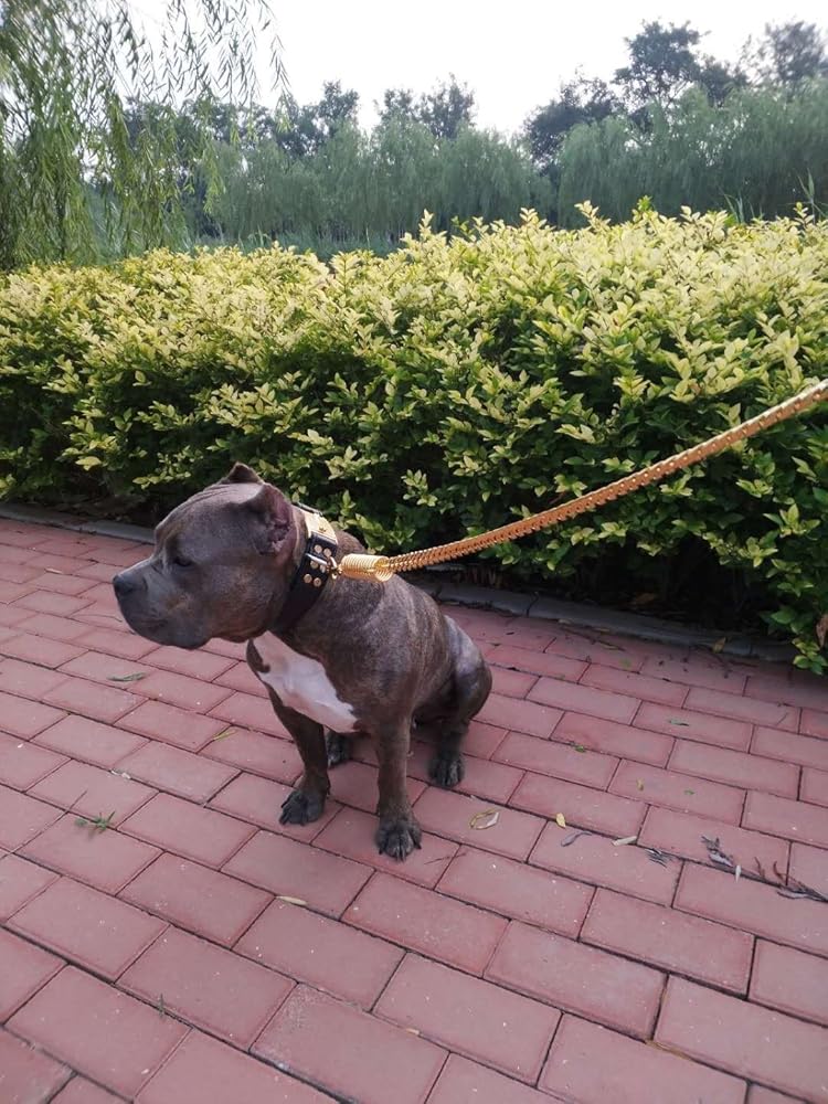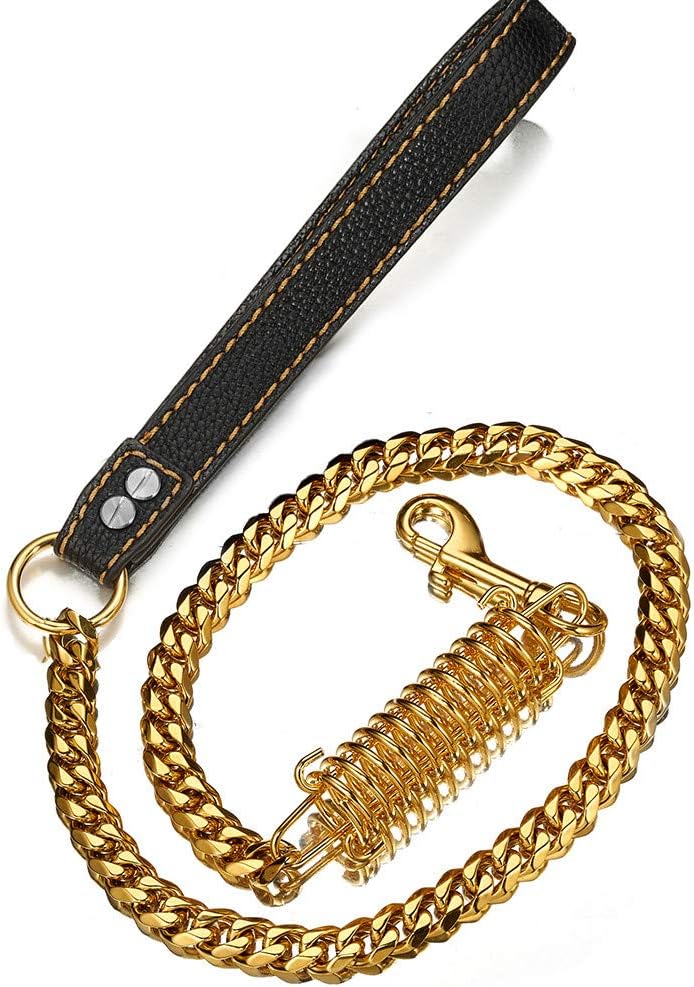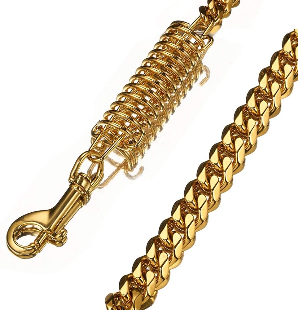 Material of Chain Links: Do you have a chewy dog? If yes, this one leash is perfect for you! Every Chain Links are made of 316L Stainless Steel and 18K gold plated, and tested to hold up to 390lbs, Never Rust, Never Tarnish, Durable, Shiny, Luxurious, Chew Proof.
