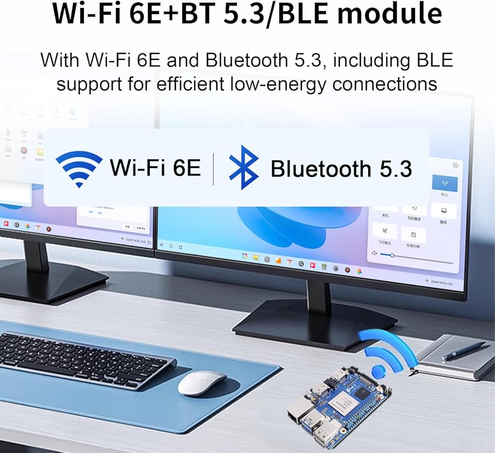 🍊[اتصال لاسلكي قوي]: يدعم Wi-Fi 6E وBluetooth 5.3، ويوفر سرعات نقل لاسلكية أسرع واتصال أكثر استقرارًا. بالإضافة إلى ذلك، فهو يدعم تقنية Bluetooth منخفضة الطاقة (BLE)، مما يلبي احتياجات الاتصالات اللاسلكية المختلفة.
