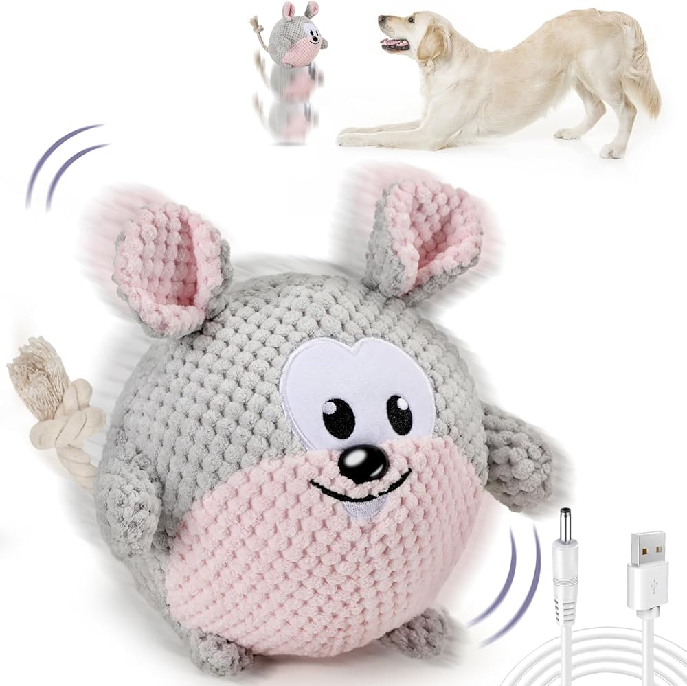 ciyvolyeen ألعاب الكلب التفاعلية للملل النشطة تتحرك الماوس أفخم لعبة الكلب كذاب لعبة الكلب القابلة لإعادة الشحن التلقائي المتداول الكرة مضغ لعبة لجرو الكلب سلالات صغيرة متوسطة كبيرة