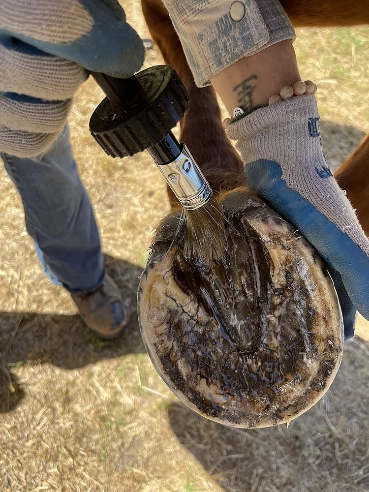 التعليمات: يُرج جيدًا قبل الاستخدام. اختر الجزء السفلي من الحافر بدقة، مع الانتباه إلى الأخاديد الجانبية ومنطقة الضفدع وفصل جدار الحافر أو الشقوق وقم بطلاء زيت الحوافر النقي في جدار الحافر والنعل. ضعيه يوميًا أو حسب الحاجة.