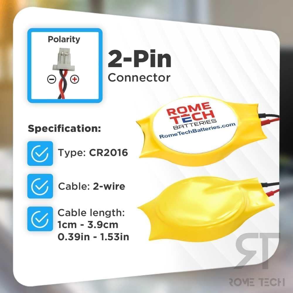 بطارية Rome Tech CR2016 CMOS BIOS لجهاز Lenovo ThinkPad X1 Yoga 1st Gen (النوع 20FQ، 20FR) / Lenovo ThinkPad X1 Yoga 2nd Gen (النوع 20JD، 20JE) - بطارية احتياطية للكمبيوتر المحمول 3V RTC CR 2016 مع كابلين سلكيين