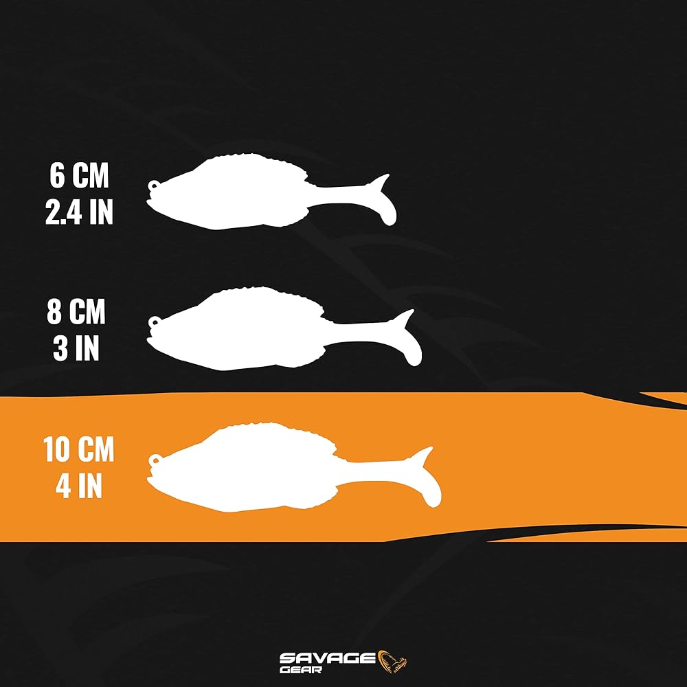 SAVAGE GEAR BLUEGILL FISHING LURES: This bait delivers unparalleled realism and targets game fish where only a structure jig can reach. Based on a bluegill profile, these bass lures have an ultra-realistic photoprint finish to attract attention.
