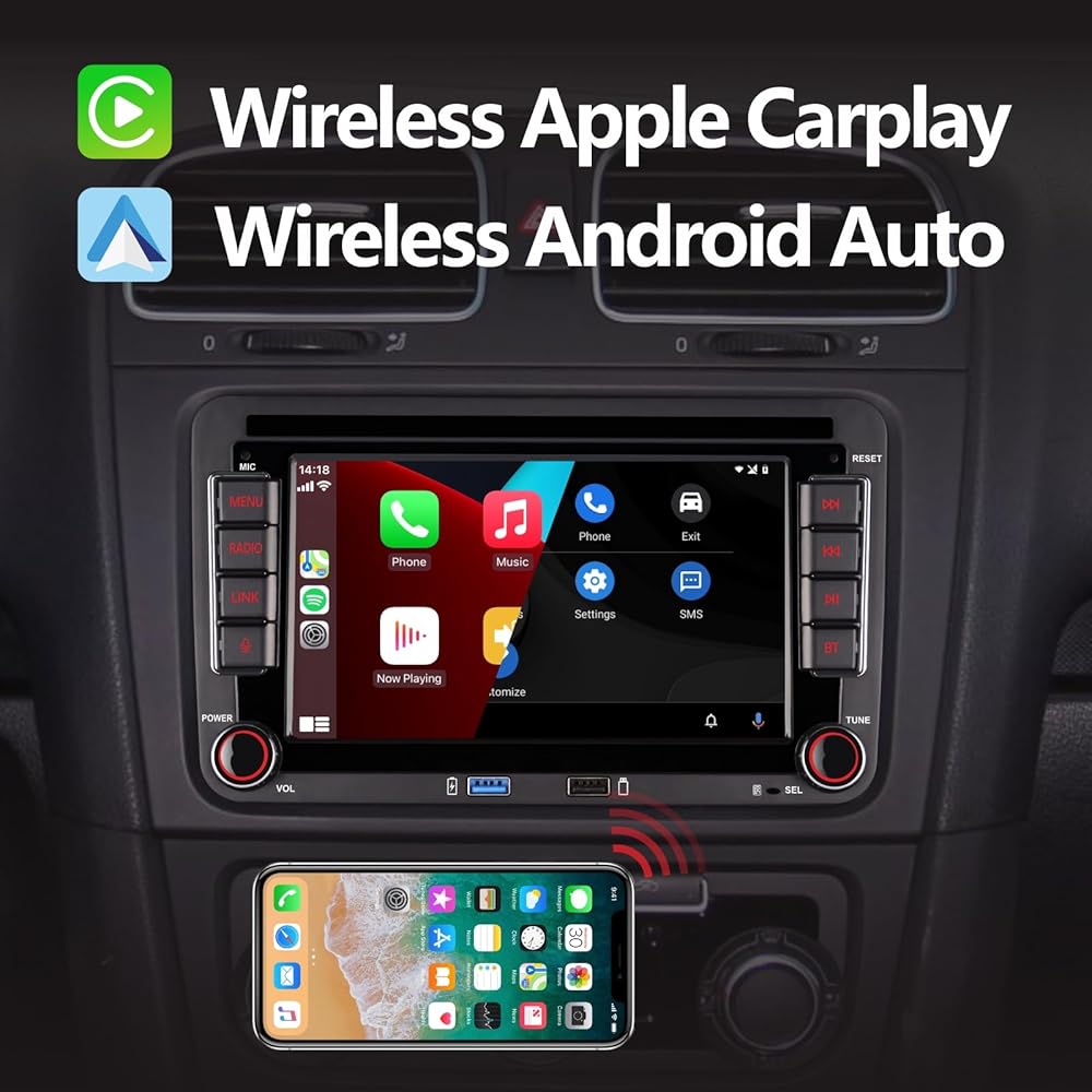 • 【ميزة جديدة】Apple CarPlay اللاسلكي وAndroid Auto اللاسلكي. لا حاجة لتوصيل أي كابل USB. يتم توصيله تلقائيًا عند الجلوس على السيارة ويتم فصله تلقائيًا عند مغادرة السيارة.