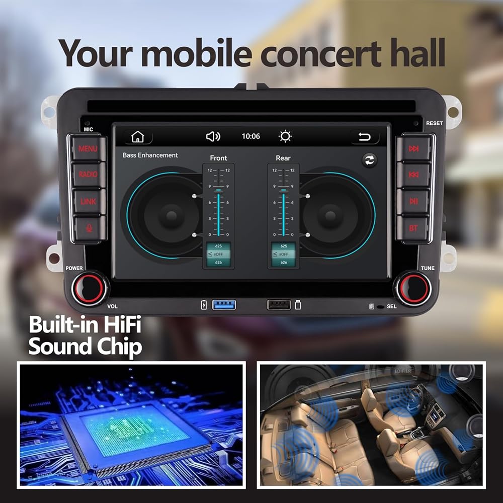 • 【مخرج طاقة عالي】 تم تجهيز هذا الراديو بمجموعات شرائح الصوت BU32107+ST7851. يمكنه تحقيق الحد الأقصى من الإخراج 4*50 واط. سيارتك تستحق جودة صوت أفضل!