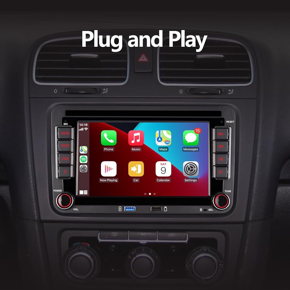ستيريو سيارة مزدوج الدين متوافق مع Carplay Android Auto مع مخرج طاقة عالية 7 بوصة بلوتوث / راديو FM AM / USB / لسيارة VW Golf 5 6 Passat Jetta Caddy EOS T5 Tiguan Touran CC Polo