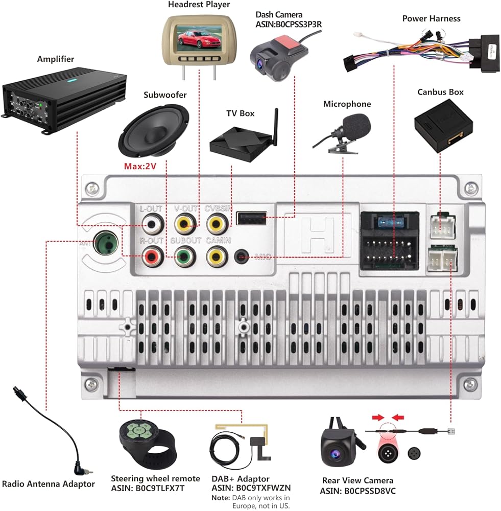 • 【يدعم كاميرا داش 】يدعم هذا الراديو كاميرا داش. يمكنه تسجيل الفيديو الأمامي أثناء القيادة. إنه سهل التثبيت، ولا يتطلب سوى خطوتين للتوصيل. تُباع كاميرا لوحة القيادة بشكل منفصل. إذا كنت في حاجة إليها، يرجى زيارة الرقم التعريفي القياسي ASIN: B0CPSS3P3R