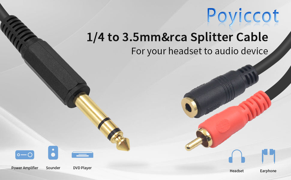 قابس 6.35 مم إلى RCA: يمكن استخدامه على المعدات المنزلية مثل DVD/VCD والتلفزيون ونظام المسرح المنزلي مع منافذ RCA المتوازنة، ويقوم بتوصيل الأجهزة بمنافذ صوت 6.35 مم (1/4 بوصة) بمكبرات الصوت ومكبرات الصوت وأجهزة الستيريو. وموصل rca الأحمر هو القناة الصحيحة.