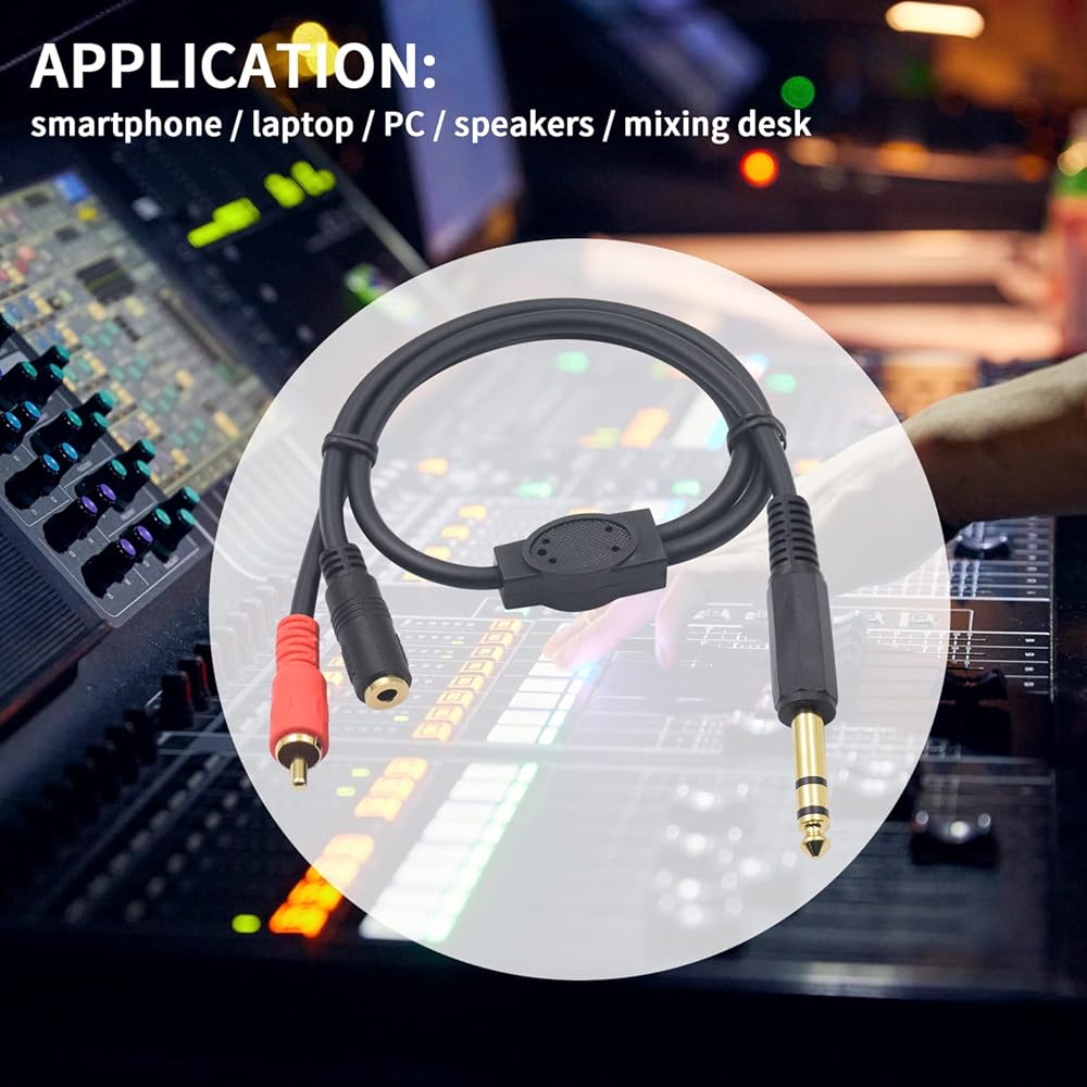 قابس 6.35 مم إلى 3.5 مم: يمكن استخدامه للهواتف الذكية والأجهزة اللوحية وأجهزة iPod أو سماعات الرأس ذات منافذ قياسية 3.5 مم لأجهزة الصوت ووحدة التحكم في المزج وأجهزة المسرح المنزلي ومكبرات الصوت بمنفذ استريو 6.35 مم.