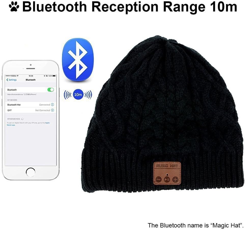 • Long Lasting Performance Battery: Built in rechargeable Li-ion battery and with a 2 hours charging time provides up to 6-8 hours of music playing or talking with a 60-180 hours standby time; Bluetooth Wireless range up to 33 feet (10 meters). A conveniently placed charging port is in the beanie- USB charging cable included.