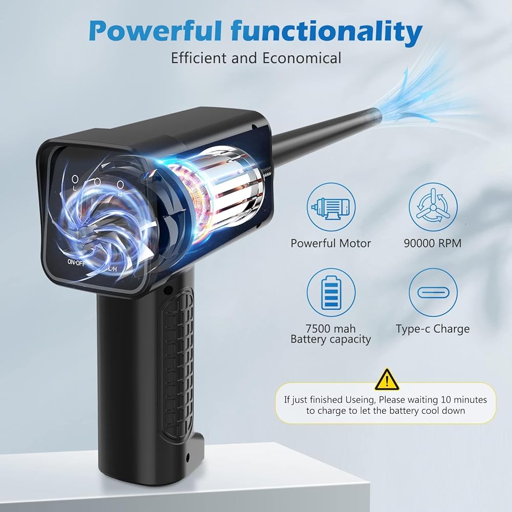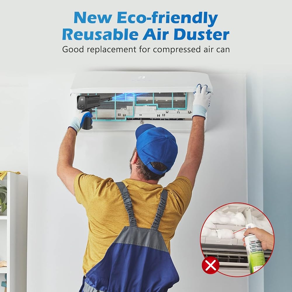 Good Replacement for Compressed Air Can - The electric air duster can be recharged and used repeatedly.more Eco-Friendly & Energy-Efficient and save money than constantly buying canned air.with max 90000 RPM motor,which can be Deep cleaning to remove dust.