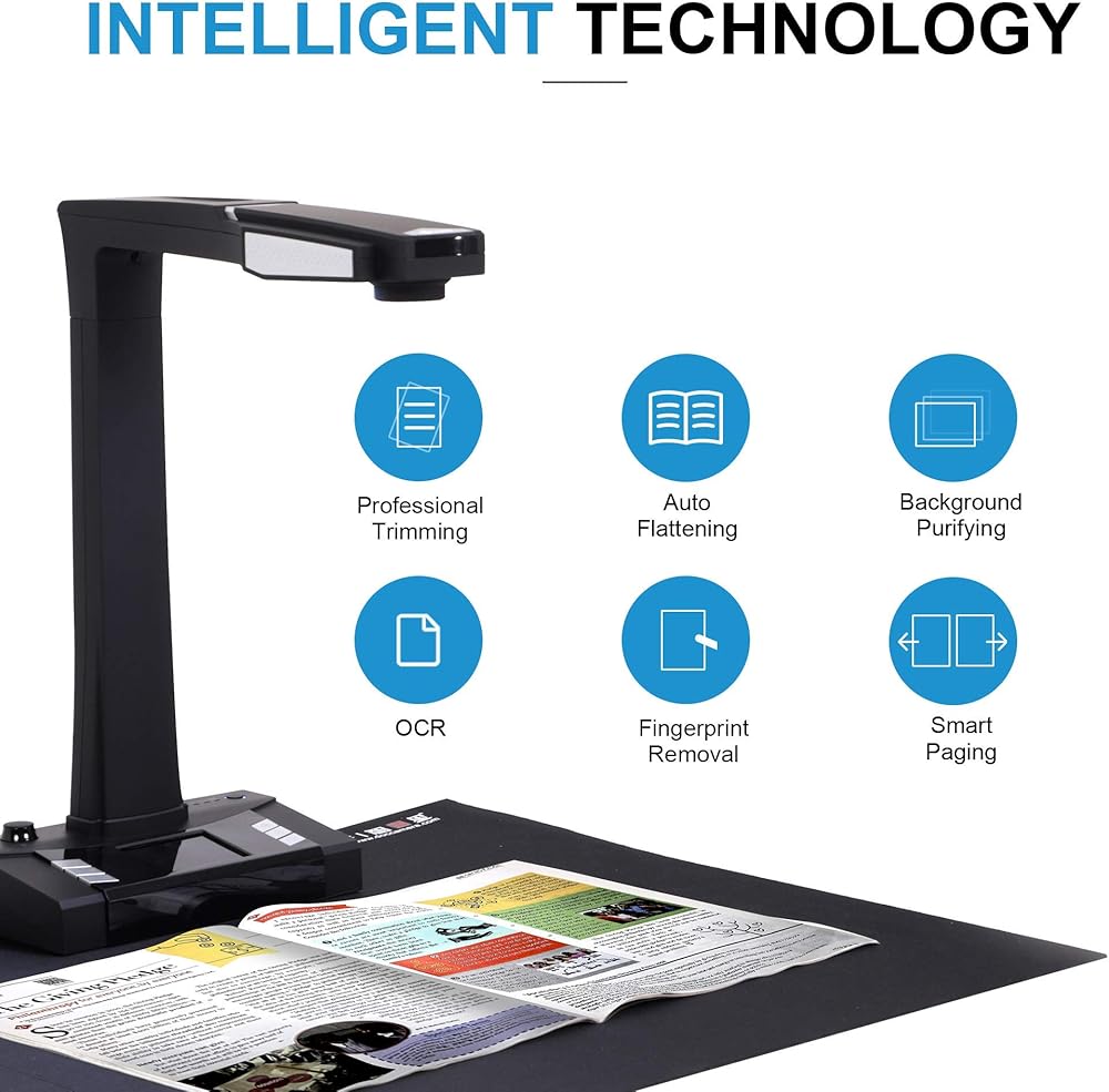 ماسح ضوئي احترافي للمستندات بدقة 18 ميجابكسل، تقنية التسوية التلقائية والمكتبية، التقاط A3، التعرف الضوئي على الحروف متعدد اللغات، تحويل إلى PDF/Word/Txt/Excel على نظام Windows وPDF على نظام Mac