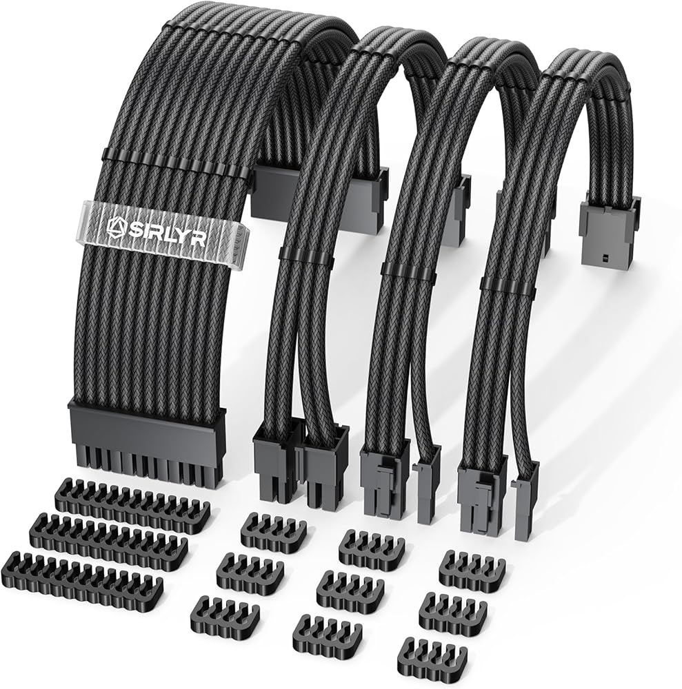 Upgrade your PC's aesthetics and functionality with the Sirlyr PSU Cable Extension Kit. With a unique pre-bent design and pre-installed cable combs, we make cable management easy and visually appealing. Our 8-pin PCIE cables come gold-plated, offering stable power supply and protecting your hardware. The unique colorful design fits well with various build, giving it a cleaner, more professional look. Trust Sirlyr for your PC cable extensions and enjoy quality assurance with our free one-year replacement service for any quality issues. Give your PC a visual and functional boost with the Sirlyr PSU Cable Extension Kit today!