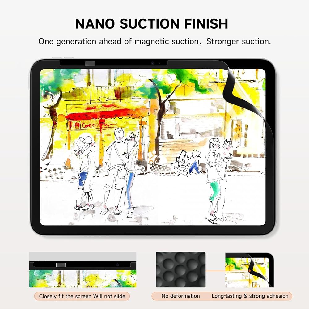 تقنية النانو المتقدمة: تقنية امتصاص النانو من مامول هي جيل متقدم على تكنولوجيا الامتصاص المغناطيسي ولها قوة شفط أقوى. يتناسب الغشاء الواقي بإحكام مع شاشة iPad دون انزلاق، ويكون الامتصاص طويل الأمد وثابتًا، دون تزييف. لا يوجد إزاحة طبيعية، اكتب وارسم بقدر ما تريد. لا ينخفض استخدام الشفط على المدى الطويل، فالعصا الحقيقية مع استخدام غير مغناطيسي ناعمة ولا تضغط على اليد.