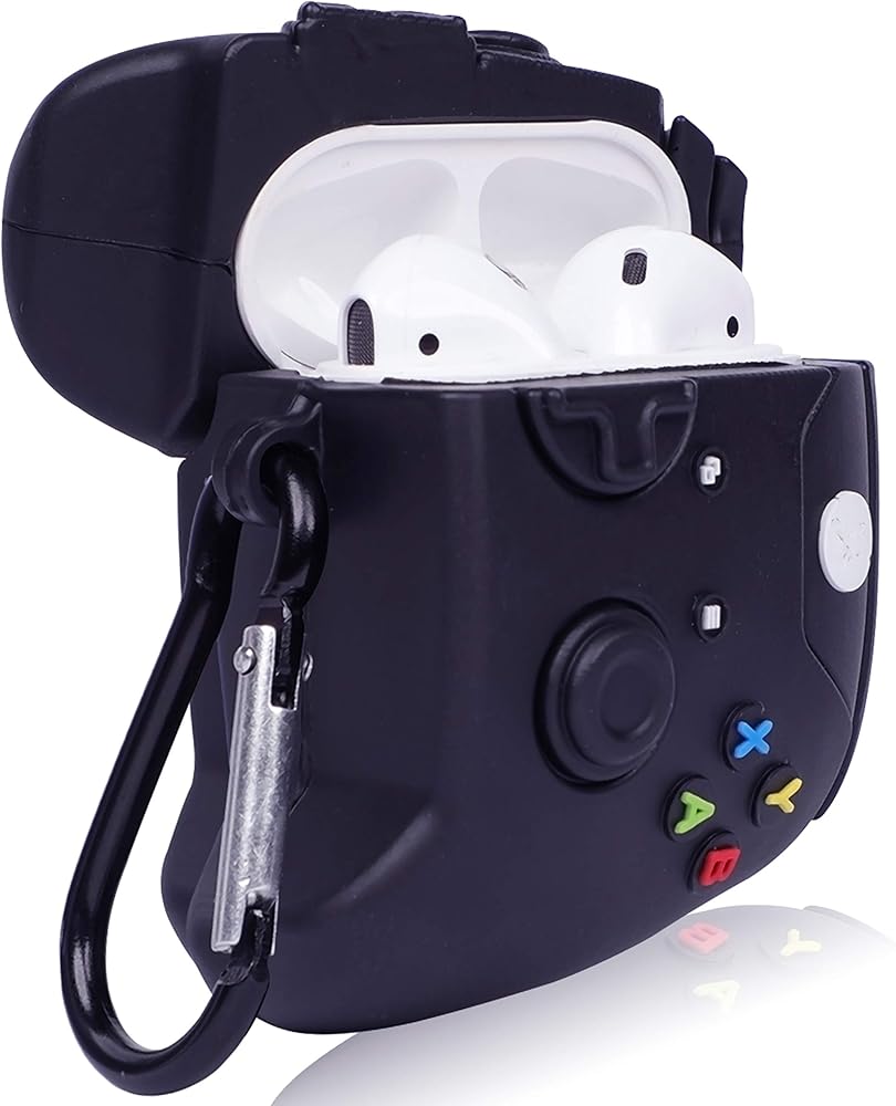 حافظة Besoar لـ Airpod 1&2، غطاء حاضنات هواء بارد ثلاثي الأبعاد من السيليكون، مصمم أنيق فريد من نوعه عصري Hypebeast بتصميم ممتع وممتع للرجال والأولاد والشباب والمراهقين والأطفال حالات ناعمة لـ Airpods 2/1 (وحدة تحكم سوداء)