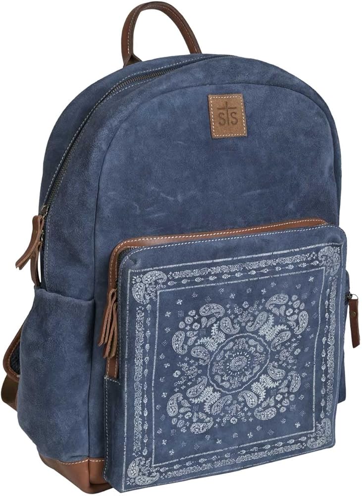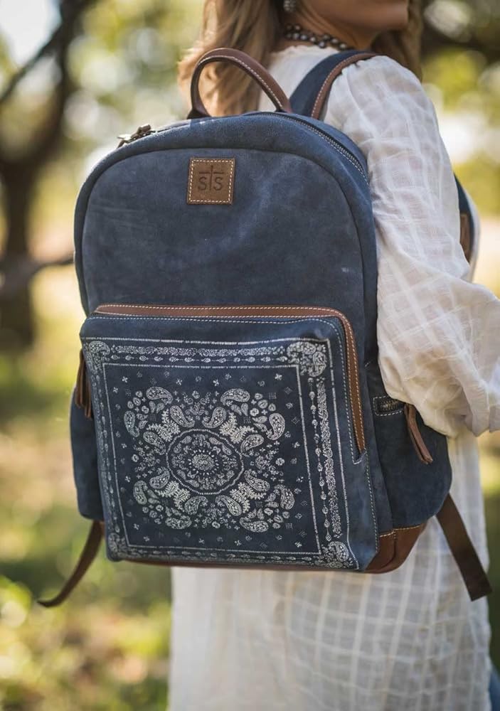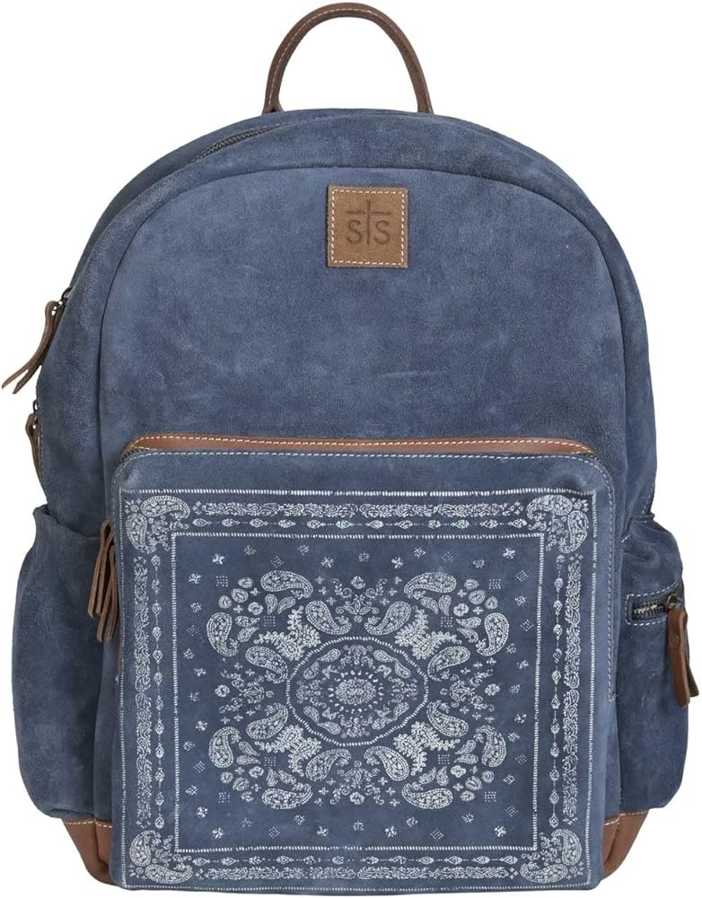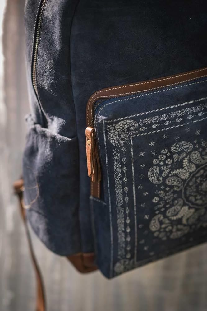 - جلد مغسول باللون الأزرق مع طبعات باندانا | جلد أصلي محبب بالكامل