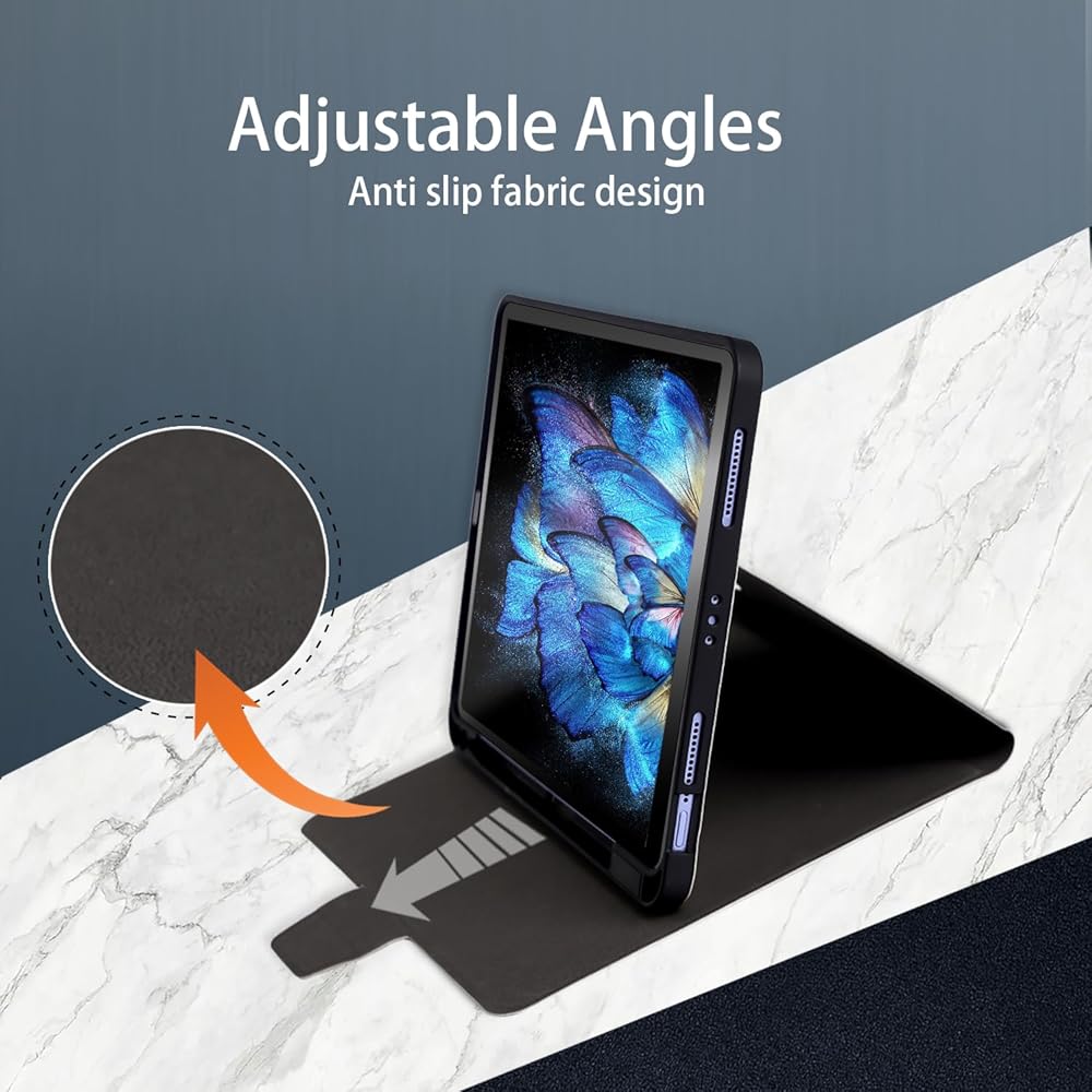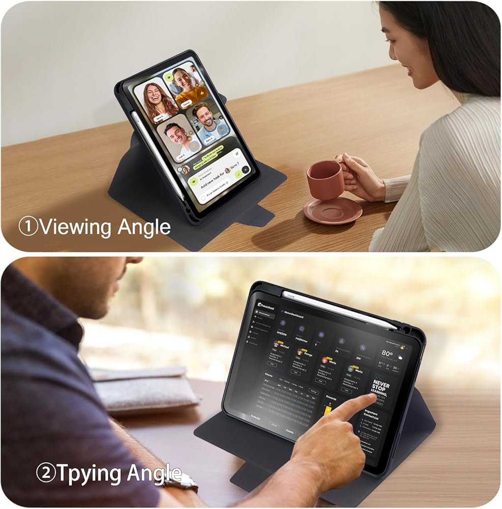 [زوايا عرض قابلة للتعديل] - مع زوايا متعددة قابلة للتعديل، يتحول هذا الجراب إلى حامل مناسب لكل من الكتابة والعرض. تضمن المادة المضادة للانزلاق بقاء جهاز iPad في مكانه، مما يوفر استخدامًا مريحًا سواء في الوضع الأفقي أو العمودي.