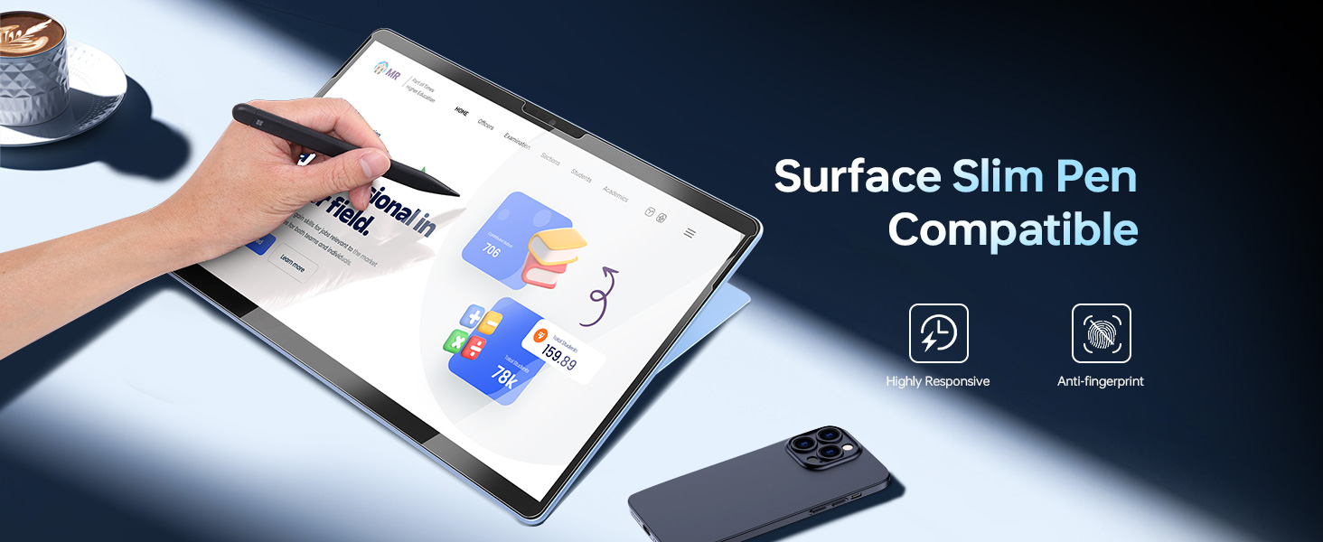 استجابة عالية: سمك 0.3 مم يساعد على الحفاظ على حساسية الاستجابة الأصلية، مما يضمن تشغيل التطبيق بسرعة وألعاب سلسة وتشغيل الفيديو. متوافق بشكل لا تشوبه شائبة مع القلم السطحي الخاص بك